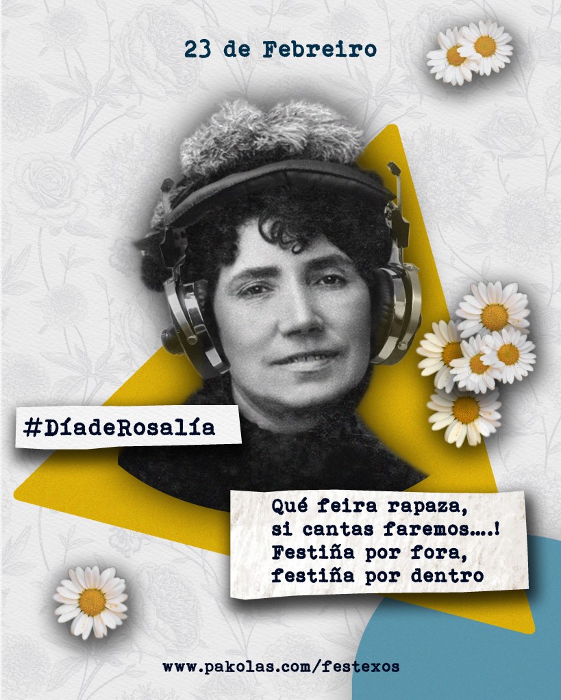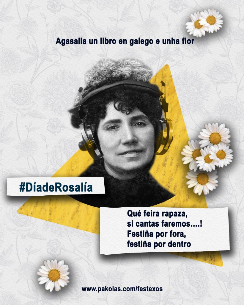 O 23 de Febreiro festexamos polo paรญs adiante o Dรญa de Rosalรญa, fixado no Calendario do Libro e da Lectura como aniversario do nacemento da nosa autora mais universal, Rosalรญa de Castro. ยซAgasalla un libro en galego e unha florยป, campaรฑa que promove a AELG dende 2010. Dende Pakolas e como particular homenaxe, deixamos por aquรญ a Rosalรญa escoitando unha boa canciรณn rockeira en galego, e xa que estamos, propoรฑemos un LIBRO-CD, que os hai ben xeitosos onde escoller, coma o de Ramona รrbita